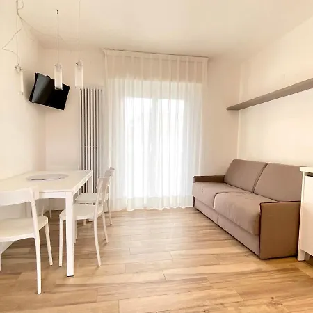 Das Apartment Jesolo Lido Village Immobiliare Pacella liegt ca. 5 Gehminuten vom Strand La Bussola entfernt und verfügt über einen Balkon und eine Sitzecke.